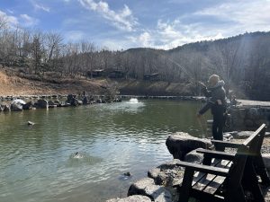 今日は暖かい朝です。天候は曇りで、少し風が吹いています。 今日は午前中に放流を行います。イワナも入ります。